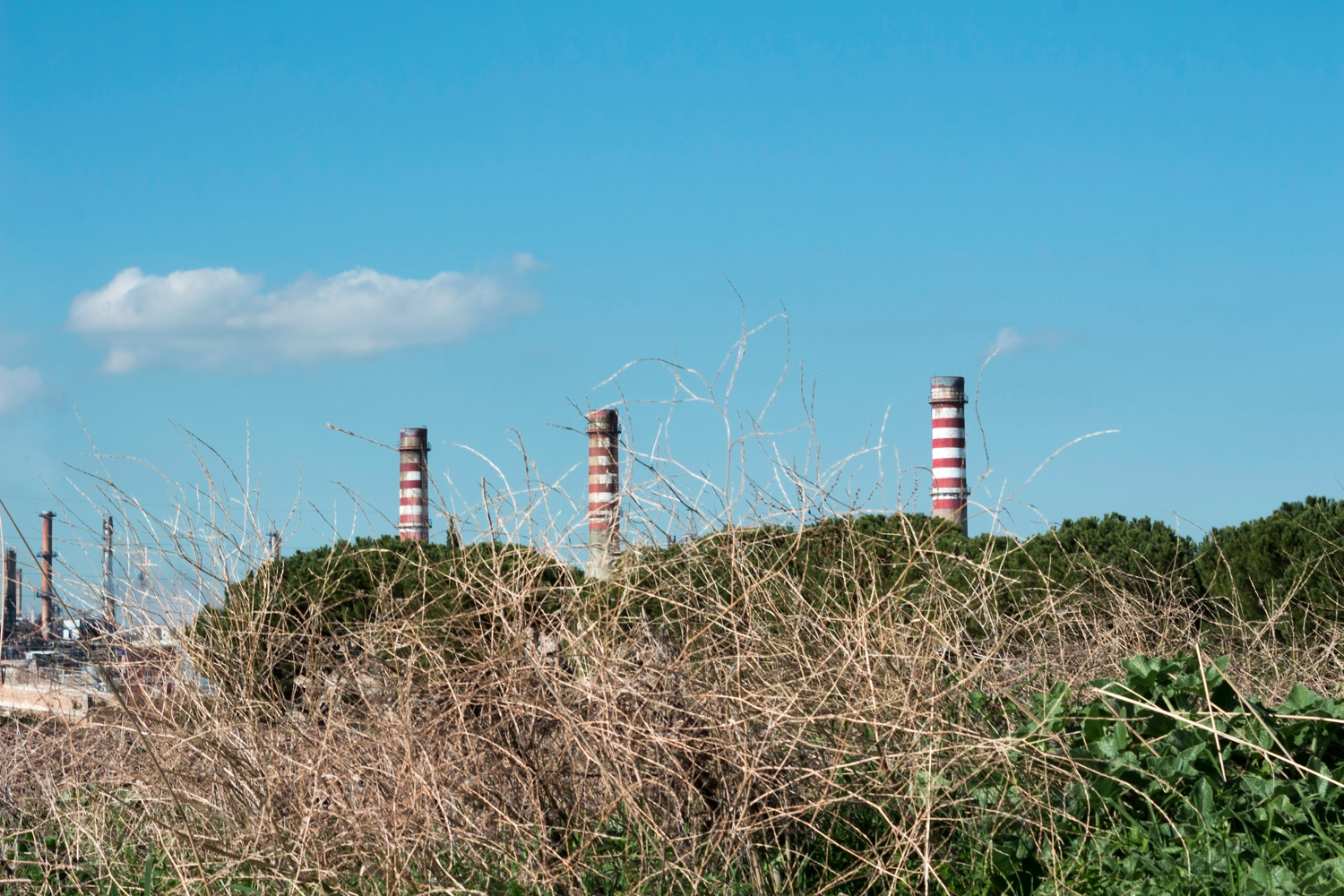 Foto scattata nei dintorni di Priolo con Canon 700D e obiettivo 18-55 mm. Priolo è uno dei comuni della provincia di Siracusa in Sicilia in cui negli anni 50 è stata costruita una grande raffineria di petrolio, successivamente nascono stabilimenti per la produzione di prodotti chimici e di materie plastiche, è dunque una delle città facente parte del polo petrolchimico siracusano più grande d’Europa. Se per certi versi ha portato dei vantaggi alla regione siciliana, dando lavoro a moltissime persone, dall’altra parte ha causato una serie di problemi ecologici come l’inquinamento delle falde acquifere e problemi di salute come tumori e bambini nati con gravi malformazioni.